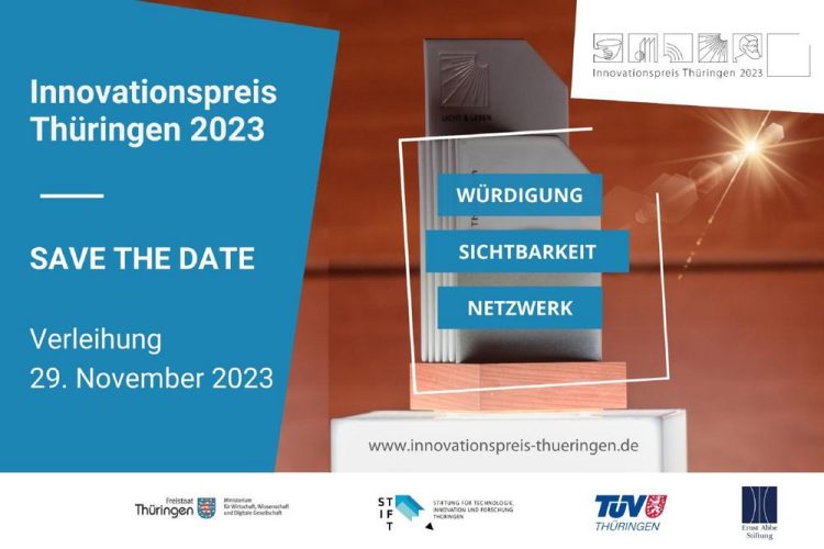 Höhepunkt des Wettbewerbes um den „Innovationspreis Thüringen“ ist die Bekanntgabe und feierliche Würdigung der Preisträger. Preisverleihung Innovationspreis Thüringen 2023 29. November 2023, 17:00 Uhr, Weimarhalle Mit dem Innovationspreis Thüringen werden jährlich herausragende Produkte, Verfahren und Dienstleistungen aus Thüringen ausgezeichnet. Ziel ist es, Innovationen sowie die dahinter stehenden Akteure zu würdigen. Mit dem Wettbewerb wollen wir…Continue reading Verleihung Innovationspreis Thüringen 2023 (Networking | Weimar)