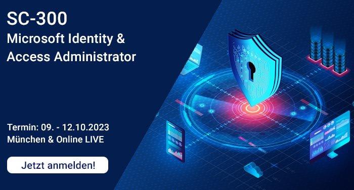 Dieser Kurs vermittelt Ihnen Kenntnisse und Fähigkeiten, die für die Implementierung von Identitätsmanagement-Lösungen auf Basis von Microsoft Azure AD und damit verbundenen Identitätstechnologien erforderlich sind. Dieses Seminar SC-300 umfasst Identitätsinhalte für Azure AD, die Registrierung von Enterprise Applications, Conditional Access, Identity Governance und andere Identity Tools. Buchen Sie jetzt diese 4-tägige Schulung! Eventdatum: 09.10.23 –…Continue reading Microsoft Identity and Access Administrator (SC-300) (Schulung | Online)