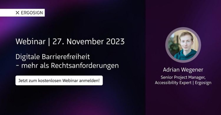 Möchten Sie die digitale Barrierefreiheit Ihrer Produkte und Dienstleistungen verbessern und dabei neue Zielgruppen erreichen?In unserem interaktiven Webinar werden wir die Bedeutung von digitaler Barrierefreiheit über die reinen Rechtsanforderungen hinaus beleuchten.Adrian Wegener zeigt Ihnen, wie Accessibility als Business Case und UX-Grundlage genutzt werden kann. Erfahren Sie, wie digitale Barrierefreiheit neue Zielgruppen erschließt und das Marktpotenzial…Continue reading Digitale Barrierefreiheit – mehr als Rechtsanforderungen (Webinar | Online)