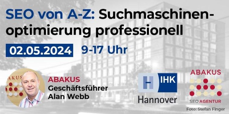 Am 02.05.2024 haben Sie die Gelegenheit, Ihr SEO Wissen aufzufrischen und zu erweitern. In einem Tagesseminar von der IHK Hannover werden aktuelle Trends und Techniken der Suchmaschinenoptimierung praxisnah vermittelt. Referent und ABAKUS Internet Marketing GmbH Geschäftsführer Alan Webb zeigt anhand konkreter Beispiele auf, welche grundlegenden Fehler es zu vermeiden gilt, und wo es Möglichkeiten zur…Continue reading IHK Hannover Seminar am 02.05.2024 – SEO von A bis Z: Suchmaschinenoptimierung professionell (Seminar | Hannover)
