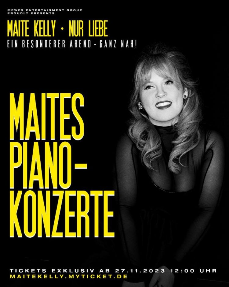 Nach dem sensationellen Erfolg ihrer Arena-Konzerte im November 2023, schenkt die 360-Grad-Entertainerin ihren Fans nun grenzenlose Nähe und eine musikalische Umarmung der besonderen Art. MAITES PIANO-KONZERT ist vor allem ein herznaher Abend, voll großer Gefühle, voller Hits in minimalistischem Gewand und natürlich voller neuer Songs, deren Veröffentlichung Maite mit ihren Fans feiern möchte. Dies alles so nah wie möglich.