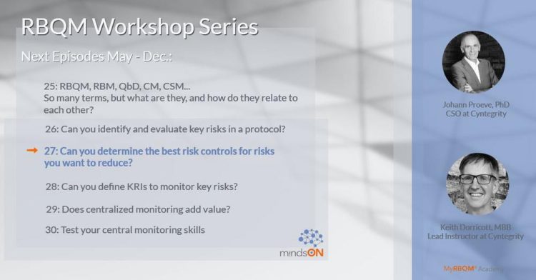 mindsON RBQM Workshop | Episode 27: Can you determine the best risk controls for risks you want to r (Webinar | Online)
