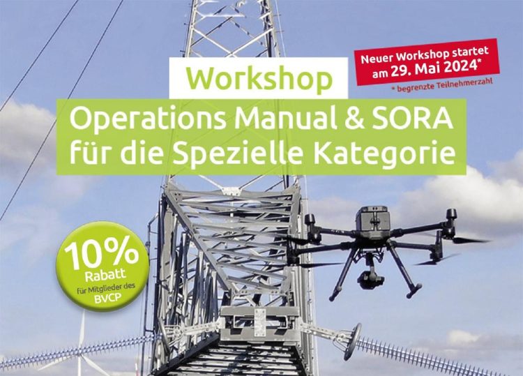 Am 29. Mai 2024 startet der Bundesverband Copter Piloten e.V. (BVCP) einen neuen Workshop Operations Manual & SORA mit 7-teiliger Webinar-Reihe! Die mehrteilige Workshop-Reihe bietet wöchentlich neue Informationen, Tipps und Support zur Antragstellung für Genehmigungen in der Speziellen Kategorie – von den Basics mit Informationen zum Verfahren und den Anforderungen für eine Fluggenehmigung in der…Continue reading Workshop Operations Manual & SORA für Drohnenflüge in der Speziellen Kategorie (Workshop | Online)