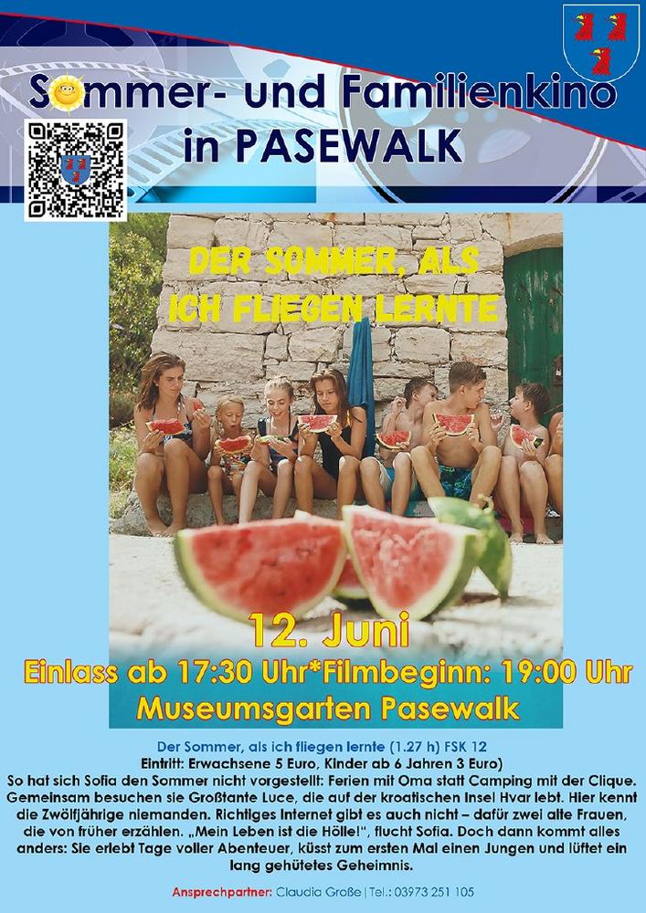 12.06.2024 | 17:30 Uhr Einlass ab 17:30 Uhr*Filmbeginn: 19:00 Uhr Der Sommer, als ich fliegen lernte (1.27 h) FSK 12 Eintritt: Erwachsene 5 Euro, Kinder ab 6 Jahren 3 Euro) So hat sich Sofia den Sommer nicht vorgestellt: Ferien mit Oma statt Camping mit der Clique. Gemeinsam besuchen sie Großtante Luce, die auf der kroatischen Insel Hvar…Continue reading Sommer- und Familienkino in Pasewalk (Unterhaltung / Freizeit | Pasewalk)