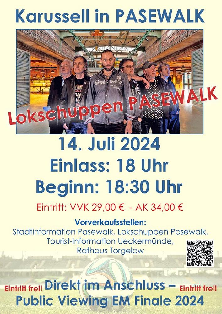 Exklusivkonzert der Rockband „Karussell“ 14.07.2024 | 18:00 Uhr Die Band wurde 1976 von Wolf Rüdiger Raschke in Leipzig gegründet und spielte sehr erfolgreich bis 1989 in verschiedenen Besetzungen. Mit der Wende ging diese Ära 1989 vorerst zu Ende. 2007 gelang es dem Sohn des Bandgründers, Joe Raschke, Karussell wieder ins Leben zu rufen. Es folgten erste Konzerte und…Continue reading Exklusivkonzert der Rockband „Karussell“ (Unterhaltung / Freizeit | Pasewalk)