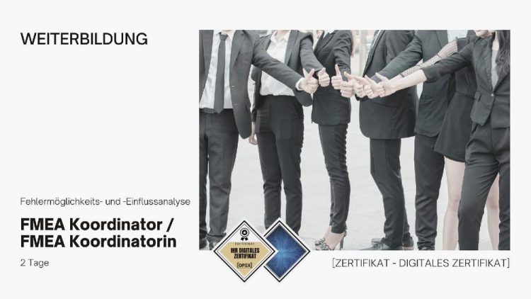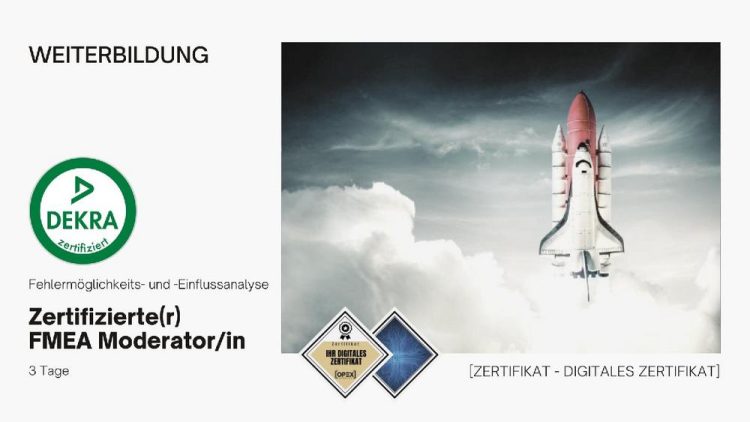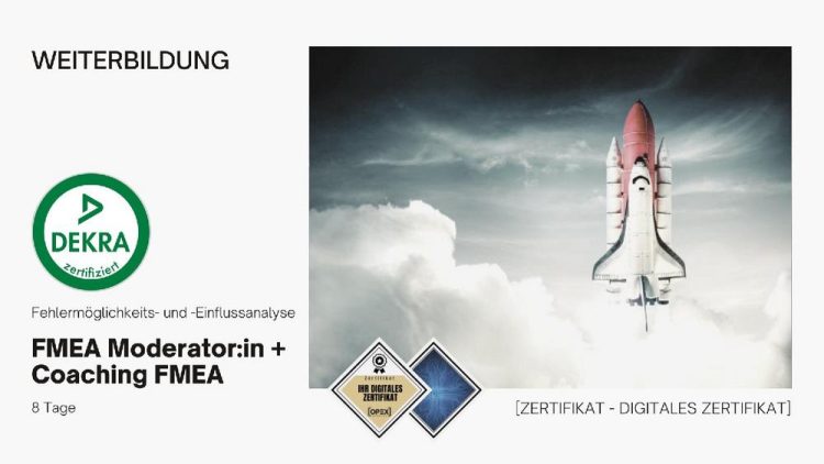 Die FMEA Moderatorenausbildung, das FMEA Moderatoren Training / Seminar richtet sich an alle Mitarbeiter, welche sich als zukünftige Moderatoren qualifizieren wollen und an Entwicklungs- und Prozessingenieure sowie an alle Führungskräfte (Projektleiter), die am Produktentstehungsprozess beteiligt sind. Als zukünftiger FMEA Moderator sind Sie in der Lage FMEA-Teamsitzungen effizient und praxisnah zu moderieren und damit wertvolle Ressourcen optimal zu nutzen. In der Rolle als aktiver und passiver…Continue reading FMEA Moderator:in | FMEA Moderatoren Ausbildung | Schulung (Seminar | Stuttgart)