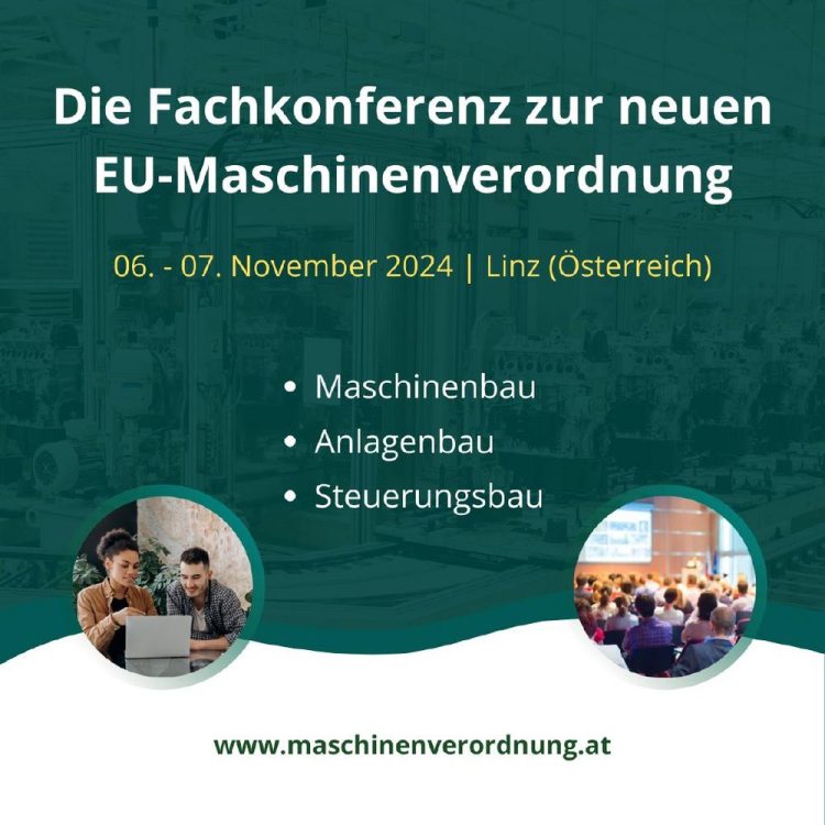 > Datum: 06. – 07.11.2024 – 09:00 – 16:30 Uhr> Ort: Courtyard by Marriott Linz, Europaplatz 2, 4020 Linz Die neue Maschinenverordnung (MVO) ersetzt die Maschinenrichtlinie (MRL 2006/42/EG). Verlieren Sie keine Zeit und beschäftigen Sie sich jetzt mit den Neuerungen und Änderungen, die Ihr Produkt und Ihren Konformitätsbewertungsprozess betreffen. Bei unserer 2-tägigen „Fachkonferenz zur neuen…Continue reading Fachkonferenz zur neuen EU-Maschinenverordnung (Konferenz | Linz)