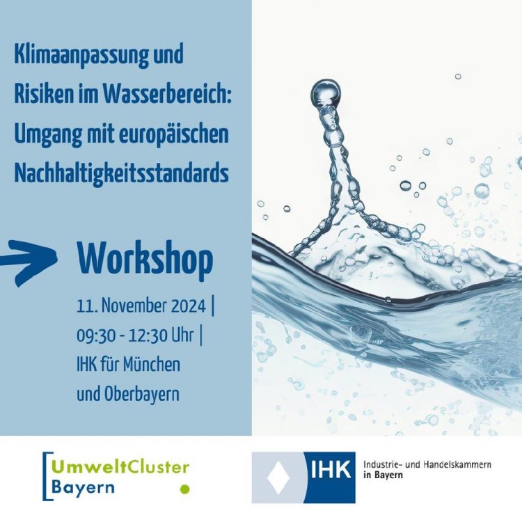 Wasser ist Leben – und eine wertvolle Ressource für Ihr Unternehmen! Dieser Workshop in Zusammenarbeit mit unserem Kooperationspartner BIHK e.V. bietet einen verständlichen Überblick darüber, wie KMUs von Wasserrisiken im Rahmen des Klimawandels betroffen sind und welche Berichtspflicht sich aufgrund dieser Risiken ergeben. Fokus liegt auf der Sensibilisierung für Möglichkeiten und Pflichten von Risikomanagement im…Continue reading Klimaanpassung & Risiken im Wasserbereich: Umgang mit europäischen Nachhaltigkeitsberichts-Standards (Workshop | München)