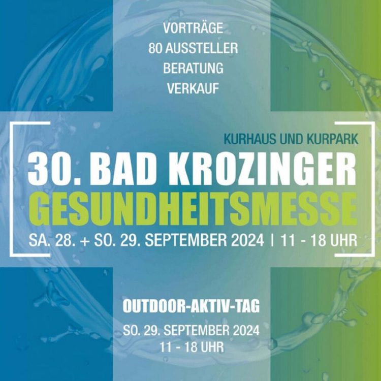 Am Samstag, den 28. September 2024, und am Sonntag, den 29. September 2024 findet jeweils von 11.00 bis 18.00 Uhr die 30. Bad Krozinger Gesundheitsmesse im Kurhaus Bad Krozingen statt. Am Sonntag wird zusätzlich ein Outdoor-Aktiv-Tag mit vielen Highlights für die ganze Familie im Kurpark angeboten. Der Eintritt ist frei. Es werden wieder mehr als 10.000 Besucher…Continue reading 30. Bad Krozinger Gesundheitsmesse (Messe | Bad Krozingen)