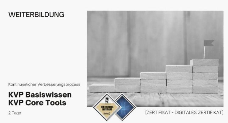 Das KVP Basiswissen Seminar / KVP Core Tools (2 Tage) bietet einen umfassenden Überblick über die Anwendungsbereiche und dazugehörige Methoden sowie die Einbettung von KVP in Qualitätsstrategien und eine Prozessoptimierung. Erweiterte Arbeitsweisen und Zieldefinitionen werden erarbeitet um das breite Spektrum von KVP Möglichkeiten kennen zu lernen. Zielerreichungen durch den Einsatz von KVP können sein: Einsparung von Ressourcen, Verbesserung von Arbeitsabläufen, Verbesserung von Produkten, Prozessen und Kundenzufriedenheit, Reduzierung von Verschwendung und Kosten, Verringerung von Leistungsdruck und Festigung einer Unternehmenskultur. Dieses Seminar richtet sich dabei an Interessierte und Führungskräfte, die einen vertiefenden Überblick sowie grundlegendes Verständnis über KVP benötigen, als auch an Mitarbeiter, welche Ihre Arbeitsweise in diesem Bereich intensivieren möchten. Für die Teilnahme am KVP Grundlagenseminar sind keine Vorkenntnisse erforderlich.