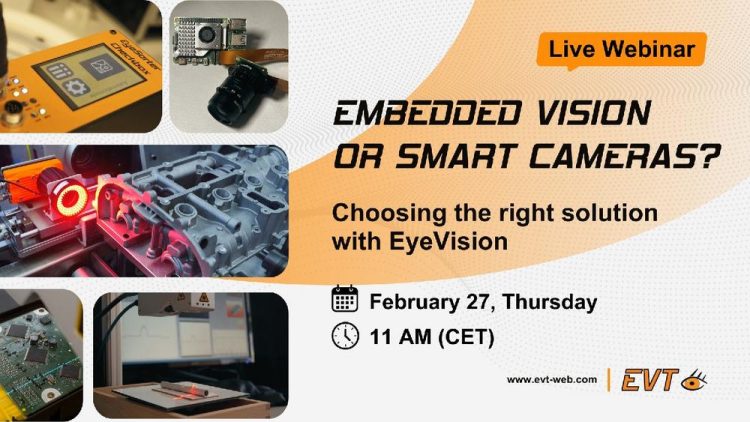 Datum: 27. Februar, 2025Uhrzeit: 11:00 AM Kämpfen Sie mit komplexen Bildverarbeitungssystemen? Vereinfachen wir Ihre Automatisierung! Intelligente Kameras verändern die industrielle Automatisierung, aber die Wahl der richtigen Lösung kann überwältigend sein. Sollten Sie sich für Embedded Vision oder Smarte Kameras entscheiden? Was sind die Vor- und Nachteile? Und wie können Sie eine nahtlose Integration ohne Probleme sicherstellen? Nehmen…Continue reading Webinar: Embedded Vision oder Smarte Kameras? Die richtige Lösung wählen mit EyeVision (Webinar | Online)