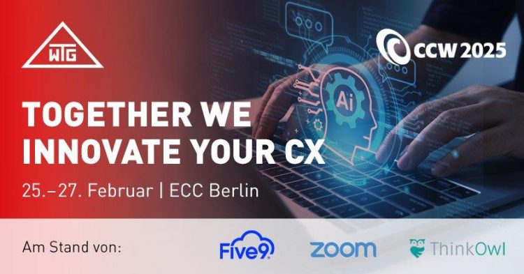 WTG auf der CCW 2025 in Berlin Besuchen Sie uns auf der diesjährigen CCW Kongressmesse für innovativen Kundendialog in Berlin Dieses Jahr findet die CCW vom 25. bis 27. Februar in Berlin statt und wir sind wieder dabei: Zusammen mit unseren renommierten Partnern Zoom, Five9 und ThinkOwl sind wir gleich an drei Ständen vertreten. Alle weiteren Infos und die Anmeldung für ein kostenloses Ticket…Continue reading CCW 2025 (Messe | Berlin)
