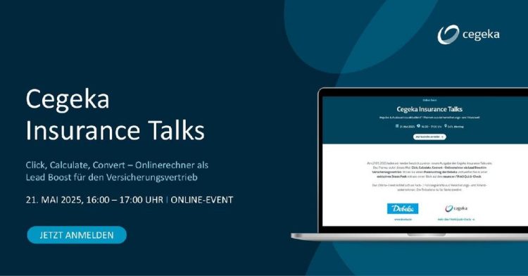 Am 21.05.2025 laden wir Fach-/Führungskräfte aus der Versicherungs- und Finanzbranche herzlich zu einer weiteren Ausgabe der Cegeka Insurance Talks ein. Das Motto lautet dieses Mal: Click, Calculate, Convert – Onlinerechner als Lead Boost für den Versicherungsvertrieb. Freuen Sie sich auf einen Praxisvortrag der Debeka sowie eine Live-Demo des neuesten FINAS Quick-Checks. Nähere Informationen und die…Continue reading Cegeka Insurance Talks (Vortrag | Online)