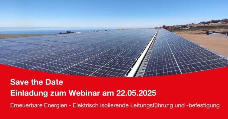 Erfahren Sie in diesem Webinar, wie Sie sichere, langlebige und wartungsfreie Installationen im Bereich erneuerbare Energien schnell und einfach einsetzen können. Melden Sie sich gleich an und entdecken Sie die Vorteile und Nutzen der Kabeltragsysteme aus elektrisch isolierendem Material. Datum: 22.05.2025Zeit: 11:00 Uhr – 11:30 UhrAnmeldung: https://lnkd.in/dBWCKt9a Wir freuen uns darauf, Ihnen innovative Lösungen vorzustellen!…Continue reading Erneuerbare Energien – Elektrisch isolierende Leitungsführung und -befestigung (Webinar | Online)