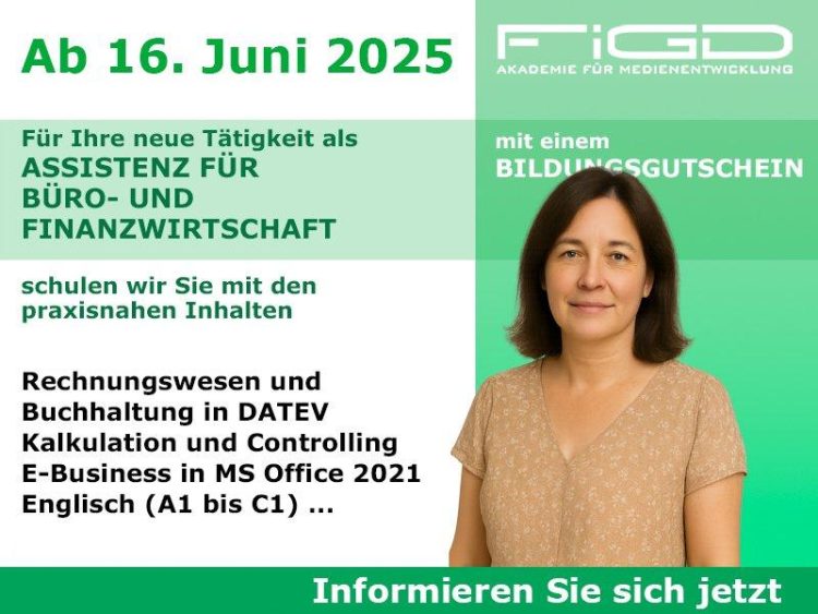 Diese 12-monatige Weiterbildung bereitet Sie umfassend auf Ihre Tätigkeit als Assistenz für Büro- und Finanzwirtschaft vor. Ob im Rechnungswesen, in der Administration oder in der Buchhaltung – Sie erwerben praxisnahes Wissen und werden fit für den modernen Büroalltag. Im Modul Rechnungswesen und Buchhaltung lernen Sie die Grundlagen der Buchführung, das Arbeiten mit DATEV, die Erstellung…Continue reading Fit für Büro & Finanzen – Ihre Weiterbildung mit 100 % Förderung (Schulung | Berlin)
