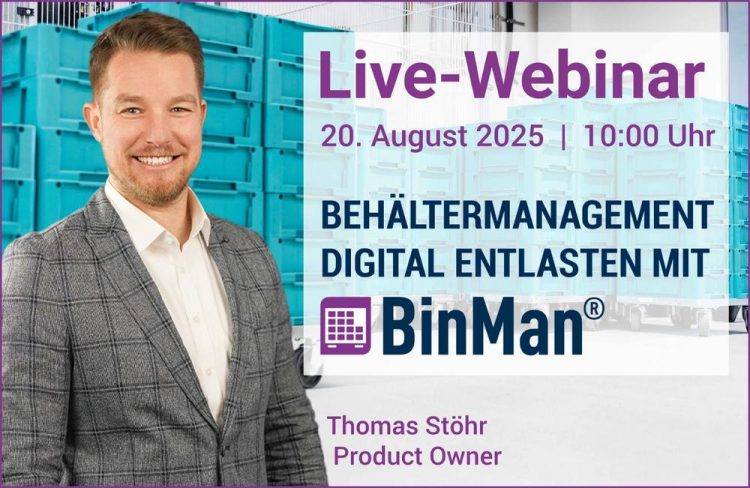 Mehrwegladungsträger sind das Rückgrat moderner Lieferketten – doch ohne ein transparentes und effizientes Management führen sie schnell zu höheren Kosten, Engpässen und Intransparenz. In unserem exklusiven Webinar zeigt unser Product Owner Thomas Stöhr, warum die Digitalisierung des Behältermanagements kein Zukunftsthema mehr ist, sondern heute über die Wettbewerbsfähigkeit entscheidet. Erleben Sie, wie unser Tool BinMan® den…Continue reading Webinar: „Schluss mit Zettelwirtschaft! – Wie digitales Behältermanagement Prozesse vereinfacht! (Webinar | Online)
