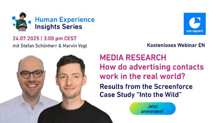 Am 24. Juli um 15:00 Uhr laden wir Sie zu unserem kostenlosen Webinar der eye square Insights Reihe ein, in dem wir die Werbewirkung über verschiedene Medienkanäle beleuchten. Stefan Schönherr und Marvin Vogt von eye square präsentieren die neuesten Ergebnisse der Screentforce-Studie „Into the Wild“ und enthüllen dabei einige überraschende Erkenntnisse zur Werbewirkung in sozialen…Continue reading Medienforschung unter maximal natürlichen Bedingungen. Die Studie „Into the Wild“ untersucht die Wir (Webinar | Online)