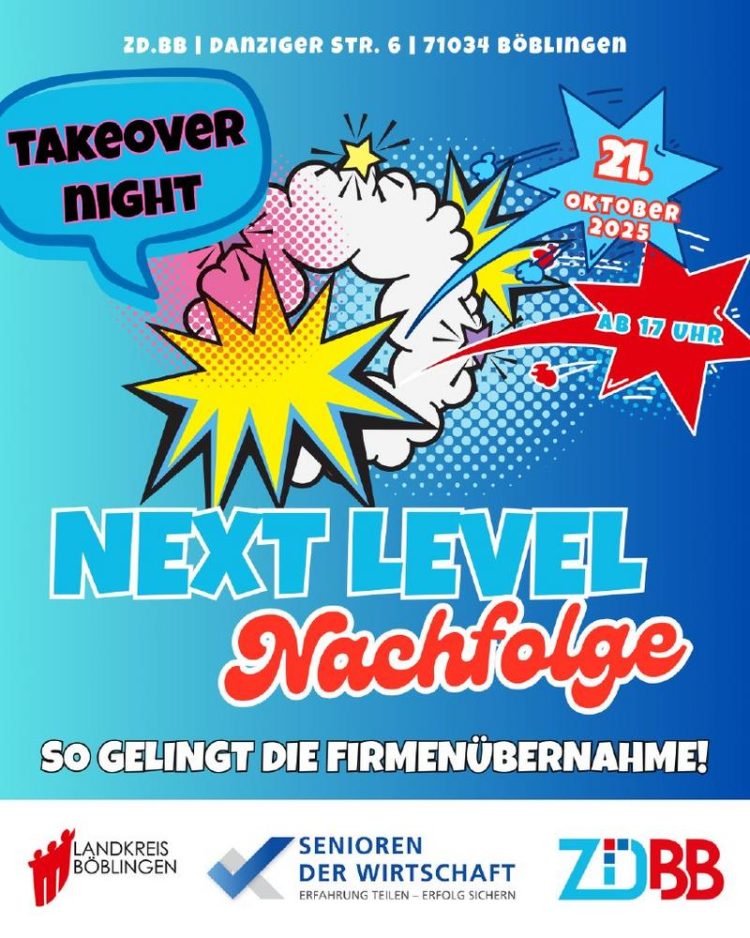 Sie möchten gründen, aber nicht ganz bei null starten? Dann sollten Sie bei unserem After-Work-Event „Next Level Nachfolge“ dabei sein! Lernen Sie Unternehmerinnen und Unternehmer kennen, die erfolgreich ein bestehendes Unternehmen übernommen haben – und erfahren Sie aus erster Hand, wie eine Unternehmensnachfolge wirklich abläuft. Offen, ehrlich und praxisnah. Im Anschluss laden wir zum Networking…Continue reading Next Level Nachfolge: So gelingt die Firmenübernahme (Vortrag | Böblingen)