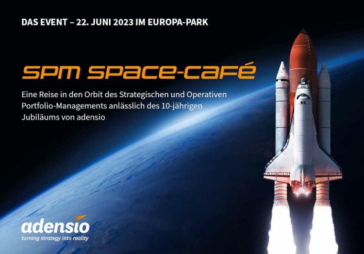 Strategisches Portfolio-Management (SPM) Space-Café Eine Reise in den Orbit des Strategischen und Operativen Portfolio-Managements anlässlich des 10-jährigen Jubiläums von adensio Zum 10-Jährigen Firmenjubiläum haben wir einen ganz besonderen Event zusammengestellt. Rund um das Thema Strategisches Portfolio-Management bzw. Projektportfolio-Management tauschen wir uns einen ganzen Tag intensiv aus. Als Gesprächsparter*innen stehen ihnen der Autor Jörg Rietsch und…Continue reading Das adensio Space-Café anlässlich des 10-Jährigen Firmenjubiläums (Konferenz | Rust)