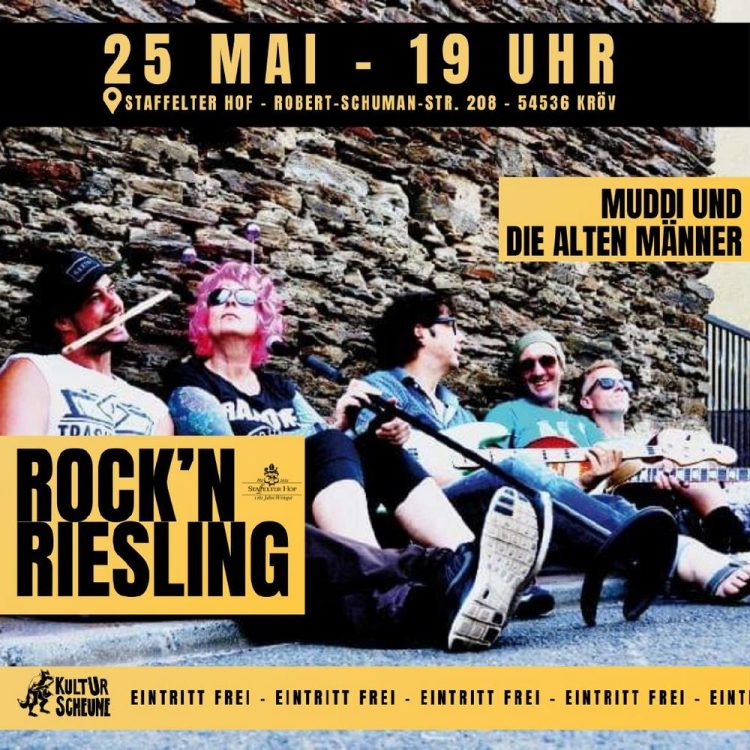 Das Bioweingut Staffelter Hof und die KultUrScheune Kröv laden herzlich ein! ROCK’N’RIESLING PARTY am 25. Mai ab 19 Uhr! Die Rockcover Liveband Muddi und die alten Männer spielt für euch das Beste zum Abrocken, Tanzen und natürlich Mitsingen! An der Weinbar gibts verschiedene Weine der kröver Jungwinzer und am Foodtruck könnt ihr euch den…Continue reading Rock’n’Riesling Party im Bioweingut Staffelter Hof (Unterhaltung / Freizeit | Kröv)