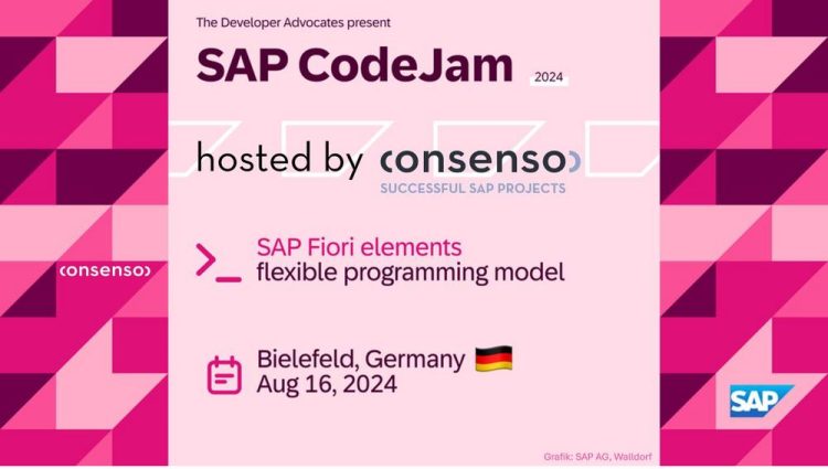 Am 16.08.2024 ist consenso erneut Gastgeber der SAP CodeJam in Bielefeld. Diesmal das Thema: „Fiori Elements. Flexible Programming Model“. Die CodeJam veranstaltet consenso im Steigenberger Hotel „Bielefelder Hof“, Bahnhofstr. 3, 33602 Bielefeld. Die Teilnahme ist kostenlos. Kurz zusammengefasst geht es darum, mit dem flexiblen Programmiermodell von Fiori Elements Metadaten-gesteuerte Frontend-Anwendungen zu erstellen, die nur wenig…Continue reading SAP CodeJam „Fiori Elements Flexible Programming Model“ (Seminar | Bielefeld)