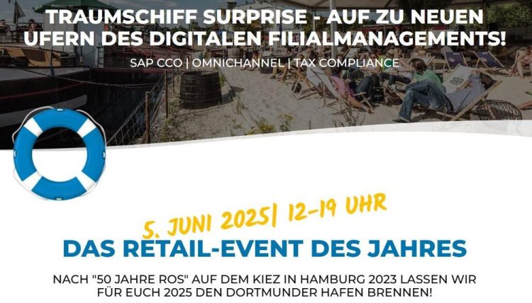Optimiertes Retail-Management mit SAP CCO, Omnichannel und Tax Compliance RetailOneSolution Network präsentiert innovative Lösungen für den Einzelhandel auf exklusivem Event in Dortmund Am 5. Juni 2025 lädt das RetailOneSolution Network zum Retail-Event des Jahres auf das Eventschiff Herr Walter in Dortmund. Von 12 bis 19 Uhr erwarten die Teilnehmer spannende Best-Practice-Vorträge zu SAP Customer Checkout,…Continue reading Traumschiff Surprise – auf zu neuen Ufern des digitalen Filialmanagements! (Networking | Dortmund)