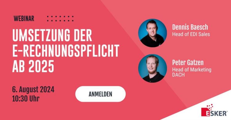 Ab 1. Januar 2025 greifen die ersten Verpflichtungen zur elektronischen Rechnungsstellung im B2B-Sektor in Deutschland. Ab diesem Zeitpunkt müssen alle Unternehmen in der Lage sein, strukturierte, elektronische Rechnungen zu empfangen. In unserem Webinar am 6. August zeigen Dennis Baesch und Peter Gatzen den aktuellen Stand zu den gesetzlichen Regelungen und wie diese mit Esker EDI…Continue reading Umsetzung der E-Rechnungspflicht ab 2025 mit Esker EDI Services (Webinar | Online)