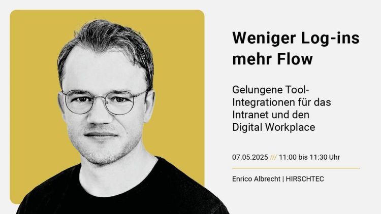 Zu viele Tools, zu viele Log-ins und Passwort-Schranken, zu wenig synchronisierte Informationen und Services? Damit ist jetzt Schluss! In unserem Webinar zeigt Ihnen Enrico Albrecht, wie smarte Tool-Integrationen den Digital Workplace optimieren, die User Experience verbessern und den Arbeitsalltag wirksam erleichtern. Wir erläutern, welche Integrationsmöglichkeiten es gibt: vom einfachen Absprung bis hin zur tiefen Einbindung.…Continue reading Weniger Log-ins, mehr Flow: Gelungene Tool-Integrationen für das Intranet und den Digital Workplace (Webinar | Online)