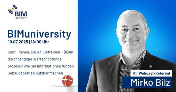 Wie Sie Informationen für den Gebäudebetrieb nutzbar machen Viele Bauprojekte enden mit der Übergabe des Gebäudes – doch was passiert danach? Obwohl moderne CAFM-Systeme und Planungswerkzeuge wie Autodesk Revit® technisch hervorragend vernetzt sind, bleibt die durchgängige Nutzung von Planungs- und Baudaten im Betrieb oft aus. Dabei existiert gerade hier enormes Potenzial: Doppelte Arbeitsschritte vermeiden, weniger…Continue reading BIMuniversity: Digitales Planen, Bauen, Betreiben – (k)ein durchgängiger Wertschöpfungsprozess? (Webinar | Online)