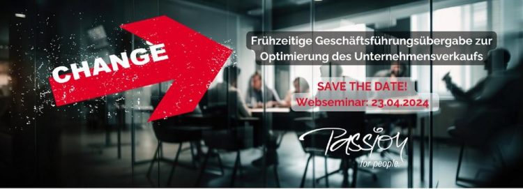 Sind Sie bereit, den Wert Ihres Unternehmens beim Verkauf zu maximieren? Dann ist unser bevorstehendes Webseminar genau das Richtige für Sie! >> SAVE THE DATE 23.04.2024 In unserem interaktiven Webseminar „Frühzeitige Geschäftsführungsübergabe zur Optimierung des Unternehmensverkaufs“ tauchen wir tief in die Strategien ein, die für einen erfolgreichen Geschäftsführungswechsel entscheidend sind. Warum eine strategische und rechtzeitige…Continue reading „Frühzeitige Geschäftsführungsübergabe zur Optimierung des Unternehmensverkaufs“ (Webinar | Online)