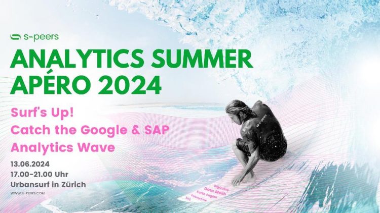 Surf’s Up! Catch the Google & SAP Analytics Wave Tägerwilen, Schweiz – 26. April 2024 – Die s-peers AG freut sich, die bevorstehende Veranstaltung „Surf’s Up! Catch the Google & SAP Analytics Wave“ anzukündigen, die am 13. Juni 2024 von 17.00 bis 21.00 Uhr im Urbansurf in Zürich stattfinden wird. In einer sich ständig verändernden…Continue reading Surf’s Up! Catch the Google & SAP Analytics Wave (Kongress | Zürich)