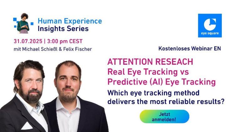 Am 31. Juli 2025 gehen Datenanalyse-Experte Felix Fischer und Michael Schiessl, CEO von eye square, in unserem Insights-Webinar der entscheidenden Frage nach: „KI oder Mensch, echtes Eye Tracking oder Predictive AI – welche Methode liefert die zuverlässigsten Ergebnisse für die Marktforschung?“ Unser kostenloses Webinar bietet eine vergleichende Analyse beider Techniken und hilft uns herauszufinden, welcher…Continue reading Real Eye Tracking vs Predictive (AI) Eye Tracking (Webinar | Online)