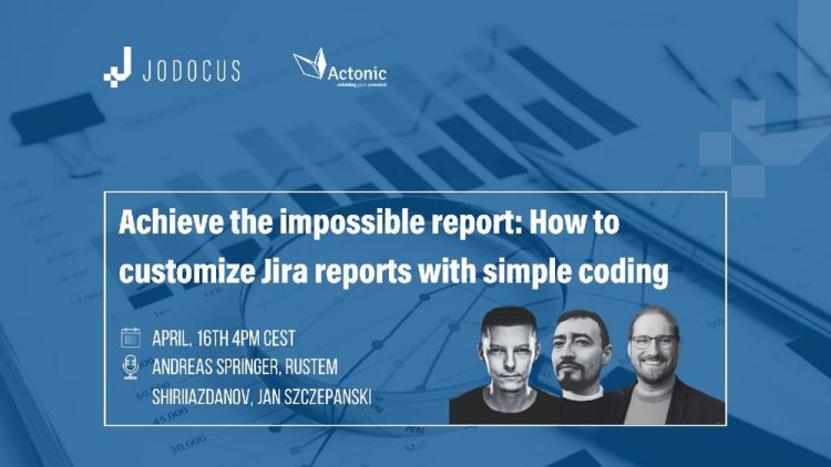 Join us for an exclusive LinkedIn Live event where we talk about customizing Jira reports to address the „last mile“ problem and revolutionize your reporting experience. The „last mile“ issue in reporting often plagues organizations, where data collected in Jira requires extensive post-processing to meet corporate standards (corporate templates, branding, styling etc.) for formal reports,…Continue reading Achieve the impossible report: How to customize Jira reports with simple coding (Webinar | Online)