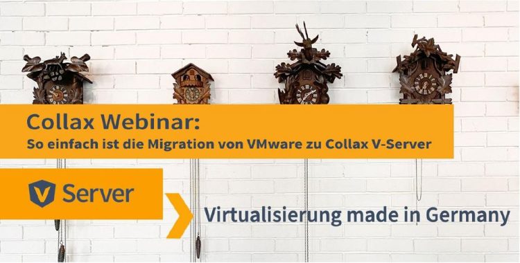 Lernen Sie in unserem Webinar die Vorteile von Collax kennen und erfahren Sie, wie einfach der Wechsel von VMware geht Falk Birkner und Stefan Kaysersberg präsentieren Ihnen alle Vorzüge von Collax V-Servern – angefangen beim Bare Metal Hypervisor V-Cube bis hin zur Hochverfügbarkeitslösung V-Bien. In einer kurzen Live-Sitzung, zeigen wir Ihnen wie einfach und reibungslos…Continue reading Alternative zu VMware – Warum sind Collax V-Server die optimale Wahl? (Webinar | Online)