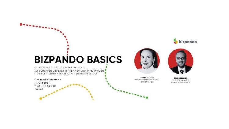 Herzlich willkommen zu „bizpando Basics“! In diesem einstündigen Webinar zeigen wir Ihnen die ersten Schritte auf dem Weg zu mehr Lieferkettentransparenz mit bizpando. Sie erhalten exklusiven Input von unseren Experten, um das Potenzial unserer Plattform voll auszuschöpfen und Ihren Einstieg zu erleichtern. Außerdem haben Sie die Gelegenheit, Ihre individuellen Fragen zu klären. Dieses kostenfreie Webinar…Continue reading bizpando Basics: Lieferkettentransparenz für Einsteiger (Webinar | Online)