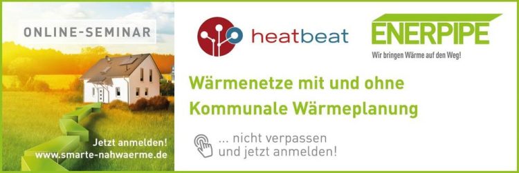 Im kostenlosen Online-Seminar „Wärmenetze mit und ohne kommunale Wärmeplanung“ geben Marcus Fuchs (heatbeat) und Markus Euring (ENERPIPE) Einblick in die Welt der Wärmeplanung und zeigen auf, wie man das Thema in der eigenen Kommune anpacken kann – mit oder auch ohne kommunaler Wärmeplanung. Die verpflichtende Wärmeplanung in Kommunen ist beschlossen. In einigen Bundesländern wurde das Ländergesetz…Continue reading Wärmenetze mit und ohne kommunale Wärmeplanung (Webinar | Online)