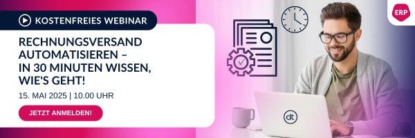 Haben Sie genug von den zeitaufwendigen und ressourcenfressenden manuellen Prozessen beim Rechnungsversand? Dann haben wir genau das Richtige für Sie! Melden Sie sich noch heute zu unserem kostenfreien Webinar an! Datum: 15. Mai 2025Uhrzeit: 10:00 UhrSprecher: Ozcan Külen, ERP-Consultant In diesem Webinar erfahren Sie alles, was Sie wissen müssen, um den Rechnungsversand in Ihrem Unternehmen…Continue reading Rechnungsversand automatisieren – in 30 Minuten wissen, wie’s geht! (Webinar | Online)