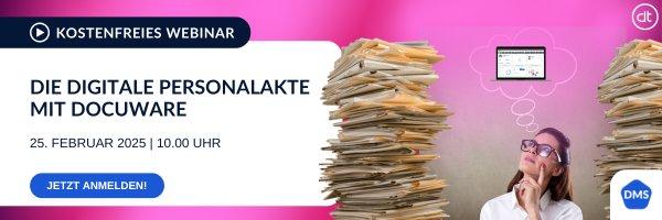 Die Digitalisierung von Personaldokumenten stellt viele Unternehmen vor große Herausforderungen. Insbesondere die Organisation und Verwaltung von Daten in diesem Bereich kann sehr zeitaufwendig und fehleranfällig sein. Doch es gibt eine Lösung! In unserem kostenfreien Webinar zeigt Ihnen unser DMS-Experte Jakob Baeuchle, wie Sie Personaldokumente einfach und effektiv digitalisieren, organisieren und bündeln können. 🗓 Wann: 25.02.2025,…Continue reading Digitale Personalakte mit DocuWare (Webinar | Online)