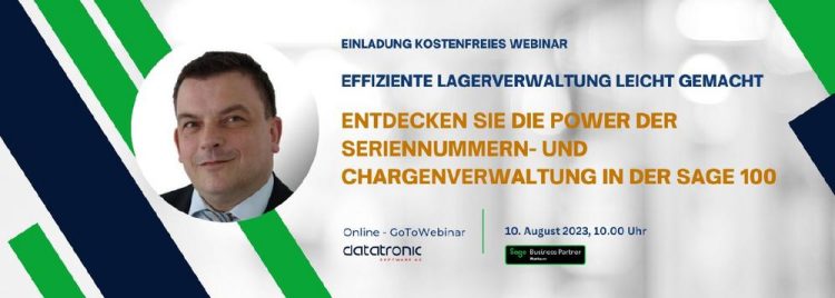 Sind Sie auf der Suche nach einer Lösung, um Ihre Lagerverwaltung effizienter zu gestalten und Ihren Nachweispflichten gerecht zu werden? Dann haben wir großartige Neuigkeiten für Sie! Wir freuen uns, Sie zu unserem exklusiven Webinar zum Thema „Usability von Seriennummern- und Chargenverwaltung in Sage 100“ einzuladen! In diesem halbstündigen Webinar werden wir Ihnen praxisnahe Lösungen…Continue reading Kostenfreies Webinar: Entdecken Sie die Power der Seriennummern- und Chargenverwaltung in Sage 100 (Webinar | Online)