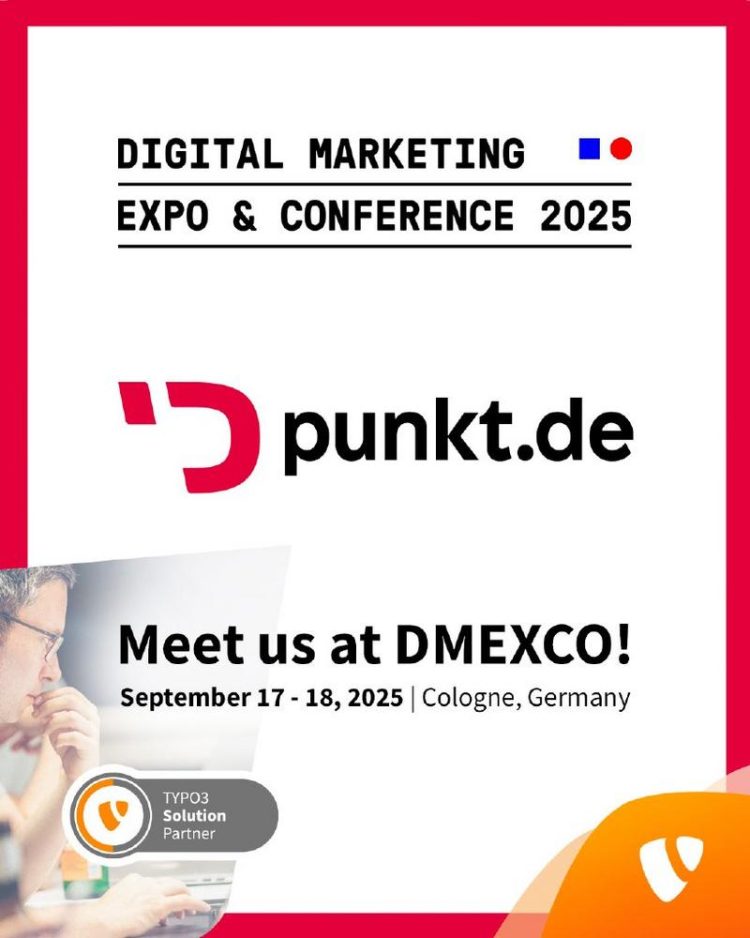 Die punkt.de GmbH ist auch dieses Jahr wieder auf der DMEXCO in Köln zu finden. Die DMEXCO ist Europas führendes Digital Marketing & Tech Event. Sie finden uns am TYPO3 Stand in Halle 06.1, Stand D031. Sie haben ein TYPO3-Projekt und suchen Unterstützung? Oder Sie möchten uns einfach kennenlernen? Dann kommen Sie vorbei oder vereinbaren…Continue reading DMEXCO 2025 (Messe | Köln)