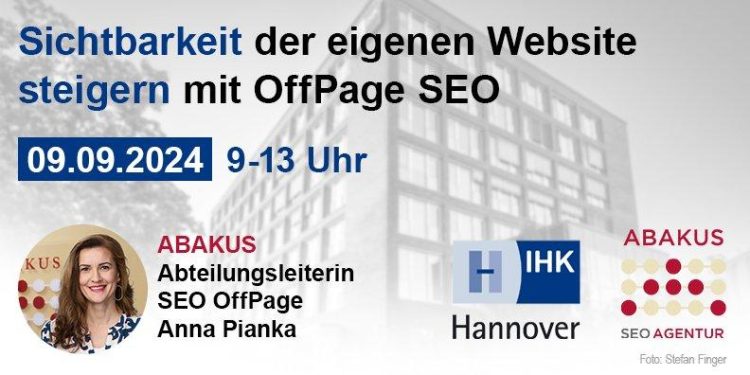 Am 25. April 2025 lädt die Industrie- und Handelskammer (IHK) Hannover zu einem praxisorientierten Halbtagesseminar ein, das Websitebetreibern und Online-Marketing-Professionals einen entscheidenden Einblick in die Welt der Offpage-Suchmaschinenoptimierung (OffPage SEO) ermöglicht. Die Referentin Anna Pianka, Leiterin des SEO OffPage Teams von ABAKUS Internet Marketing, teilt ihre Expertise in Linkbewertung und strategischem Linkaufbau. In Seminar „Sichtbarkeit…Continue reading Sichtbarkeit der eigenen Website steigern mit OffPage SEO (Seminar | Hannover)