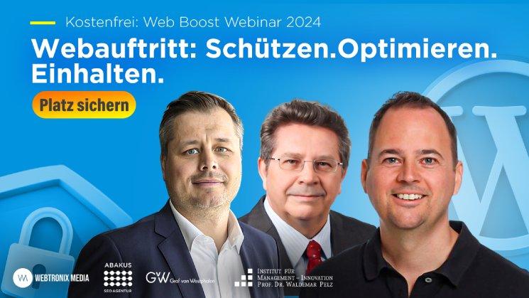 ABAKUS Internet Marketing GmbHs Partner für Webprogrammierung, Webtronix Media, lädt am 8. November 2024 um 10 Uhr zu einem kostenfreien Web Boost Webinar ein: „Webauftritt: Schützen, Optimieren, Einhalten“. In diesem Webinar zeigen erfahrene Experten, wie Sie Ihre Website sicher gestalten, ihre Sichtbarkeit steigern und international erfolgreich positionieren. WordPress-SicherheitWebtronix Media beleuchtet die Gefahren, die auf jede…Continue reading Webtronix Media Webinar „Webauftritt: Schützen. Optimieren. Einhalten.“ mit ABAKUS-Vortrag (Webinar | Online)