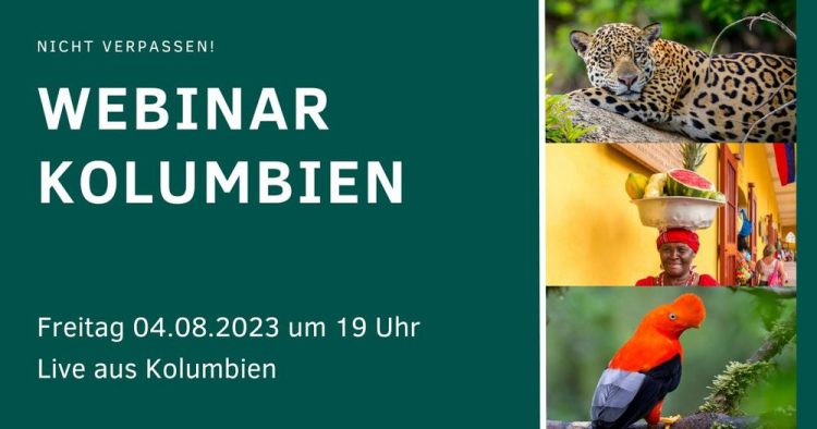 Entdecke das faszinierende Kolumbien: Webinar von travel-to-nature am 04.08.2023 um 19 Uhr! Tauche mit uns ein in die faszinierende Welt Kolumbiens! Unser exklusives Webinar, moderiert von den beiden Reiseexperten Jara und Damian, entführt dich in die Geheimnisse dieses atemberaubenden Landes. Stephan wird live vor Ort sein und uns mit spannenden Insidertipps versorgen, die du in…Continue reading Kolumbien Webinar (Webinar | Online)