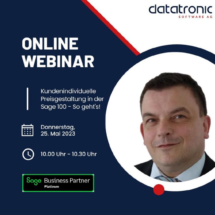 Wir freuen uns, Ihnen ein spannendes, halbstündiges Webinar zum Thema „Kundenindividuelle Preisgestaltung in der Sage 100“ präsentieren zu können. Der Fokus unseres kostenfreien Webinars liegt in der Zuordnung von Preislisten, Rabattstaffeln, Rabattsätzen und Rabattgruppen, um eine kundenindividuelle Preisgestaltung/Rabattmatrix in der Sage 100 abzubilden. Erfahren Sie anhand von 4 Schritten, wie Sie die oben genannten Elemente…Continue reading Kundenindividuelle Preisgestaltung in der Sage 100 – So geht’s! (Webinar | Online)