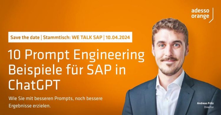 Als Gastgeber der adesso orange Hamburg Edition „WE TALK SAP“, laden wir dich herzlich am 10. April 2024 um 18 Uhr ins adesso Office ein! Im Rahmen dessen wird Andreas Fritz praktische Einblicke zu Prompt Engineering für SAP in ChatGPT geben. Natürlich ist genügend Zeit eingeplant, um sich kennenzulernen, auszutauschen und zu vernetzen. 💡 Die wichtigsten…Continue reading Stammtisch „WE TALK SAP“ in Hamburg (Networking | Hamburg)